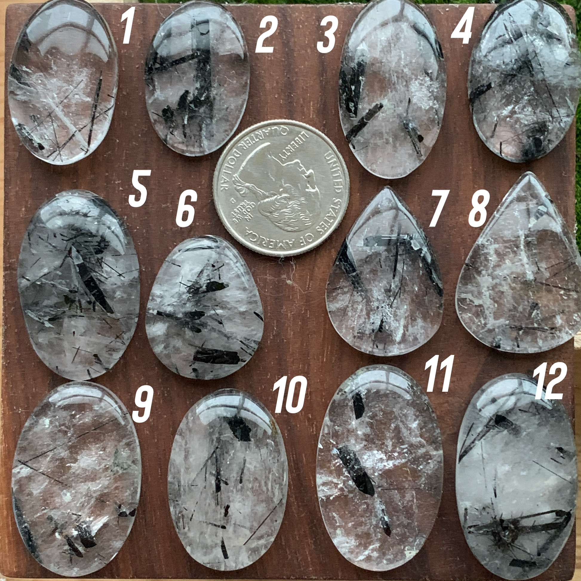 Introducing the Black Rutile Cabochon – nature's own masterpiece ready to shine in your jewelry designs! These stunning oval and teardrop-shaped stones feature dramatic black rutile needles dancing through translucent quartz, creating a mesmerizing celestial effect. Perfect pendant size for statement necklaces, earrings, or custom creations. Each cabochon is polished smooth for a luxurious finish that catches light beautifully. Whether you're a seasoned jewelry maker or just starting your creative journey, these beauties are your ticket to crafting pieces that'll have everyone asking, "Where did you get that?" Let your imagination run wild and transform these geological wonders into wearable art!