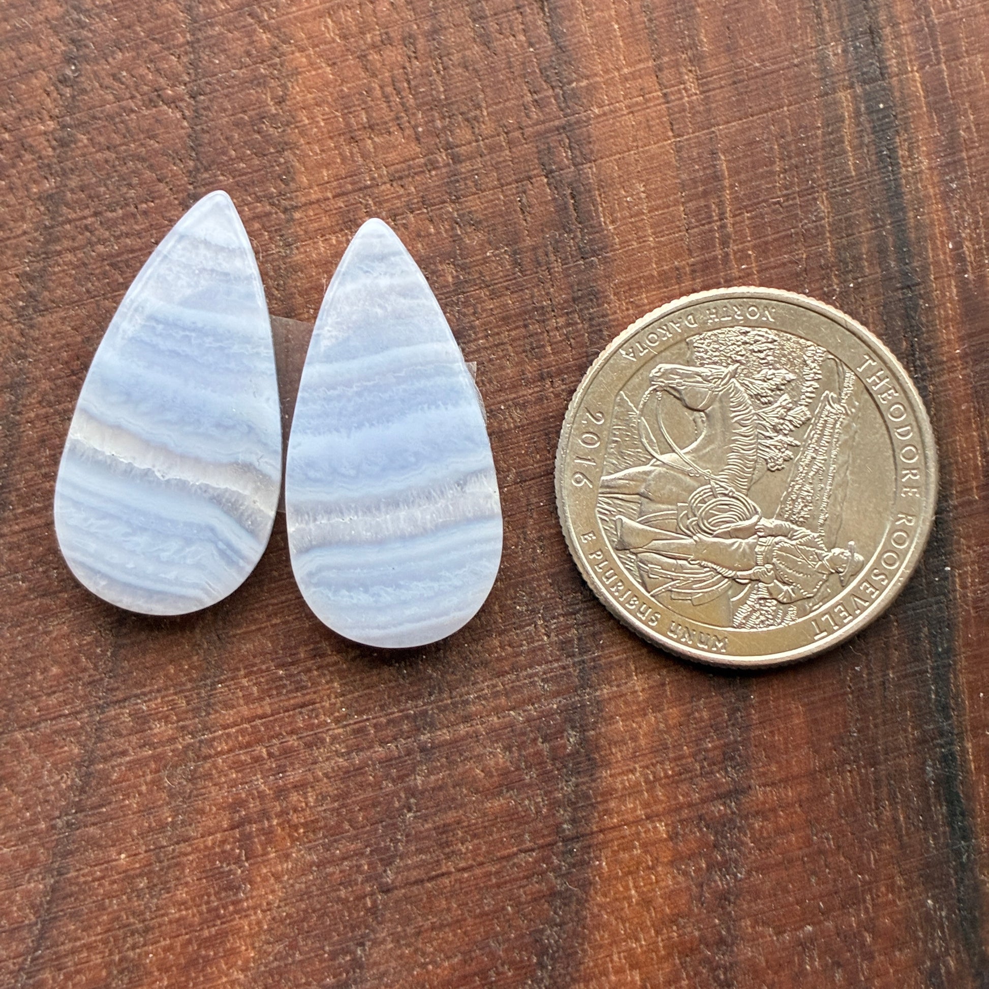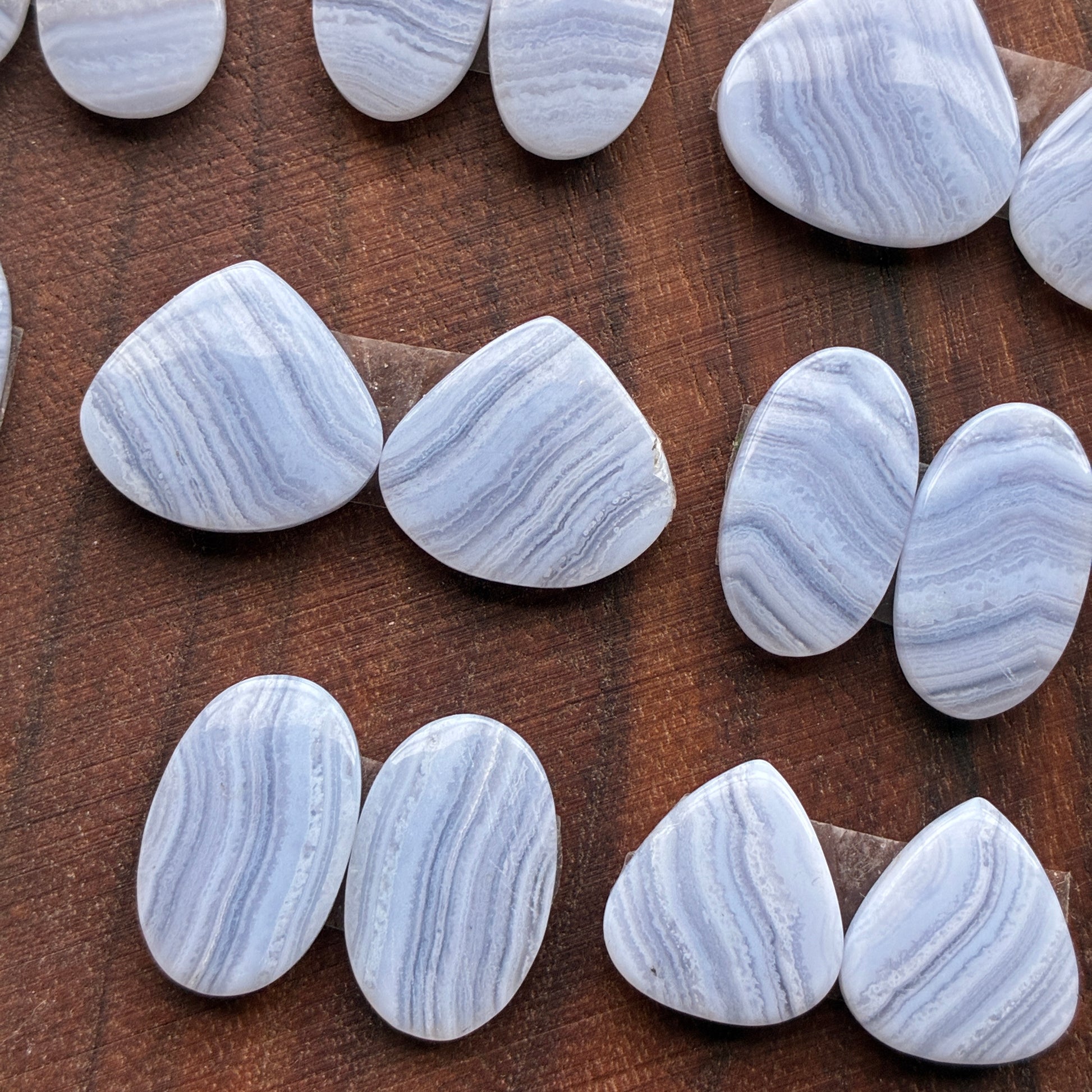 Blue Lace Agate - Cabochon Pair - Oval - Teardrop