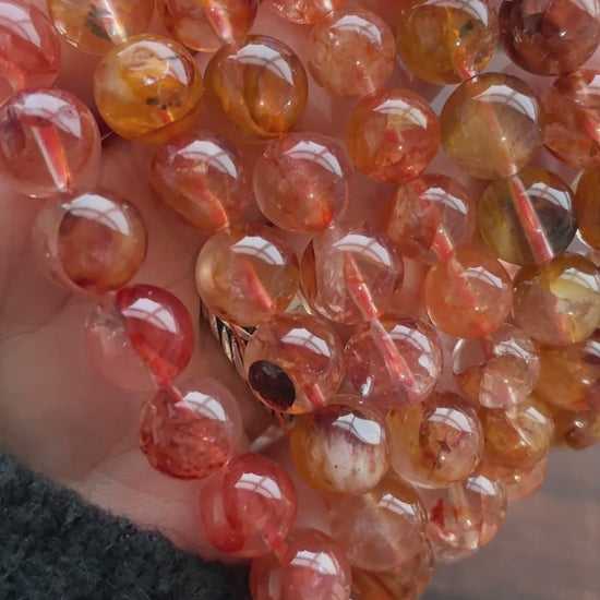 Fire Quartz 9mm Bead Bracelet (Hematoid Quartz)