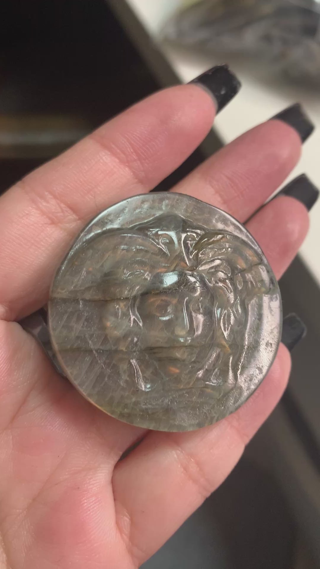 Get ready to add a pop of color to your collection with our Labradorite Carving! This stone is expertly crafted to showcase its natural orange flash, making it truly one-of-a-kind. Perfect for any crystal lover looking for some vibrant energy. (Limited stock, grab one while you can!)