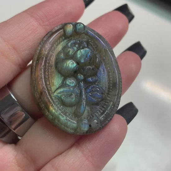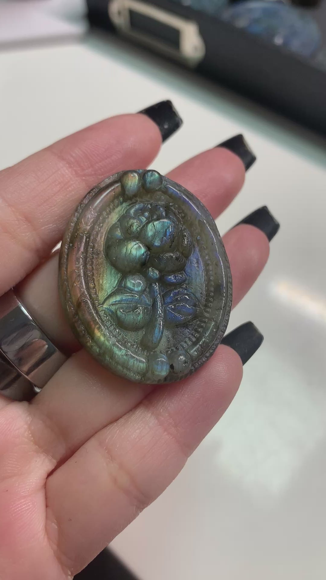 Add a touch of magic to your outfit with our Labradorite Carving! This unique LABCAV026 piece features a beautiful lab carving rose pendant with a stunning rainbow flash. Perfect for playful and quirky souls looking for a touch of whimsy in their accessories. (Limited stock, so snag yours now!)