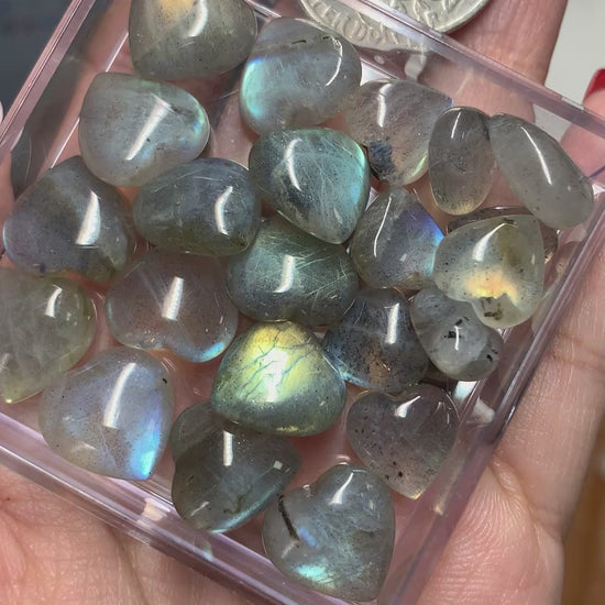 Fall in love with this Labradorite Mini Puffy Heart! Measuring 12mm, this heart-shaped stone is perfect for carrying in your pocket or adding to your collection. With its stunning iridescent colors, this heart will radiate positive vibes and add a touch of whimsy to any outfit. Get yours today!