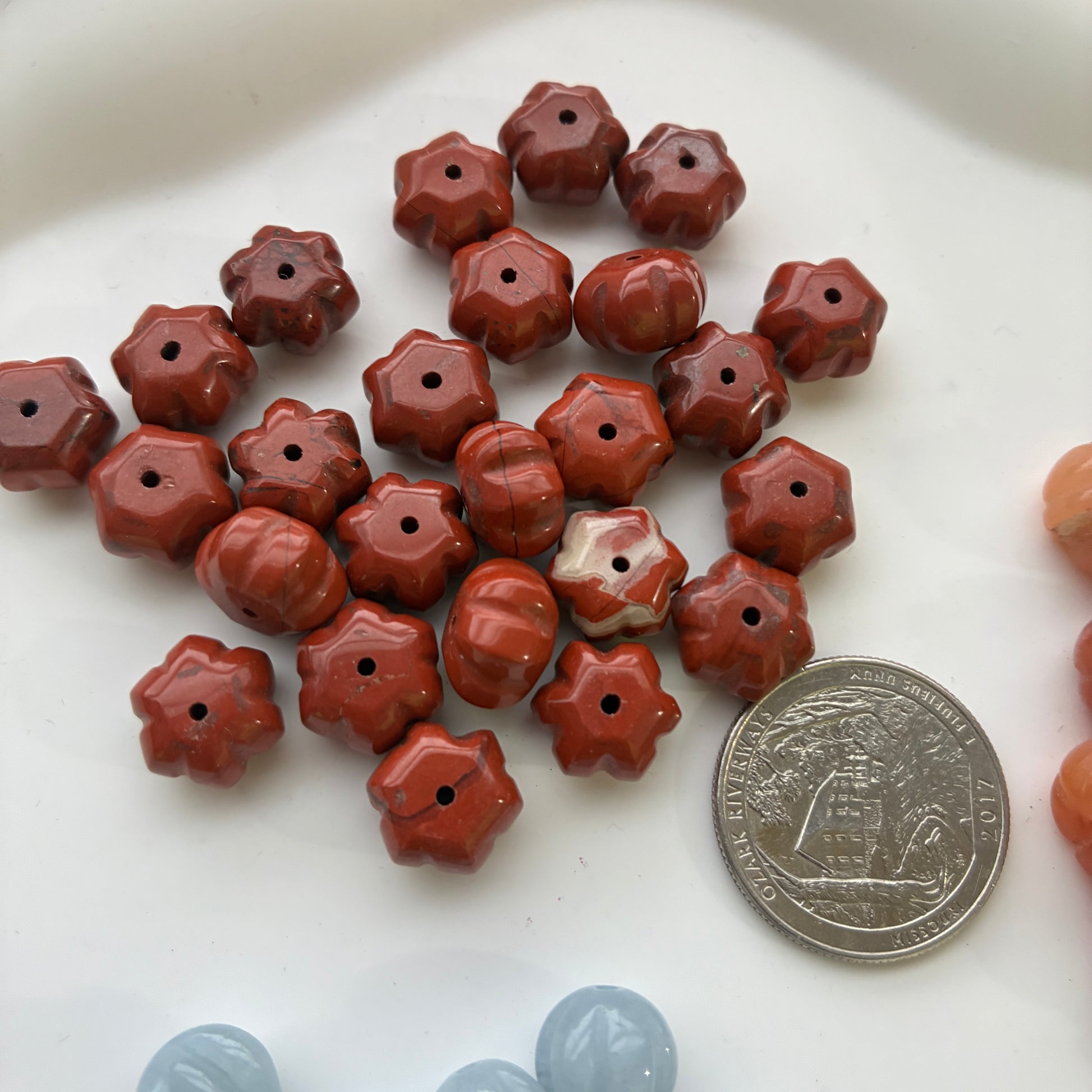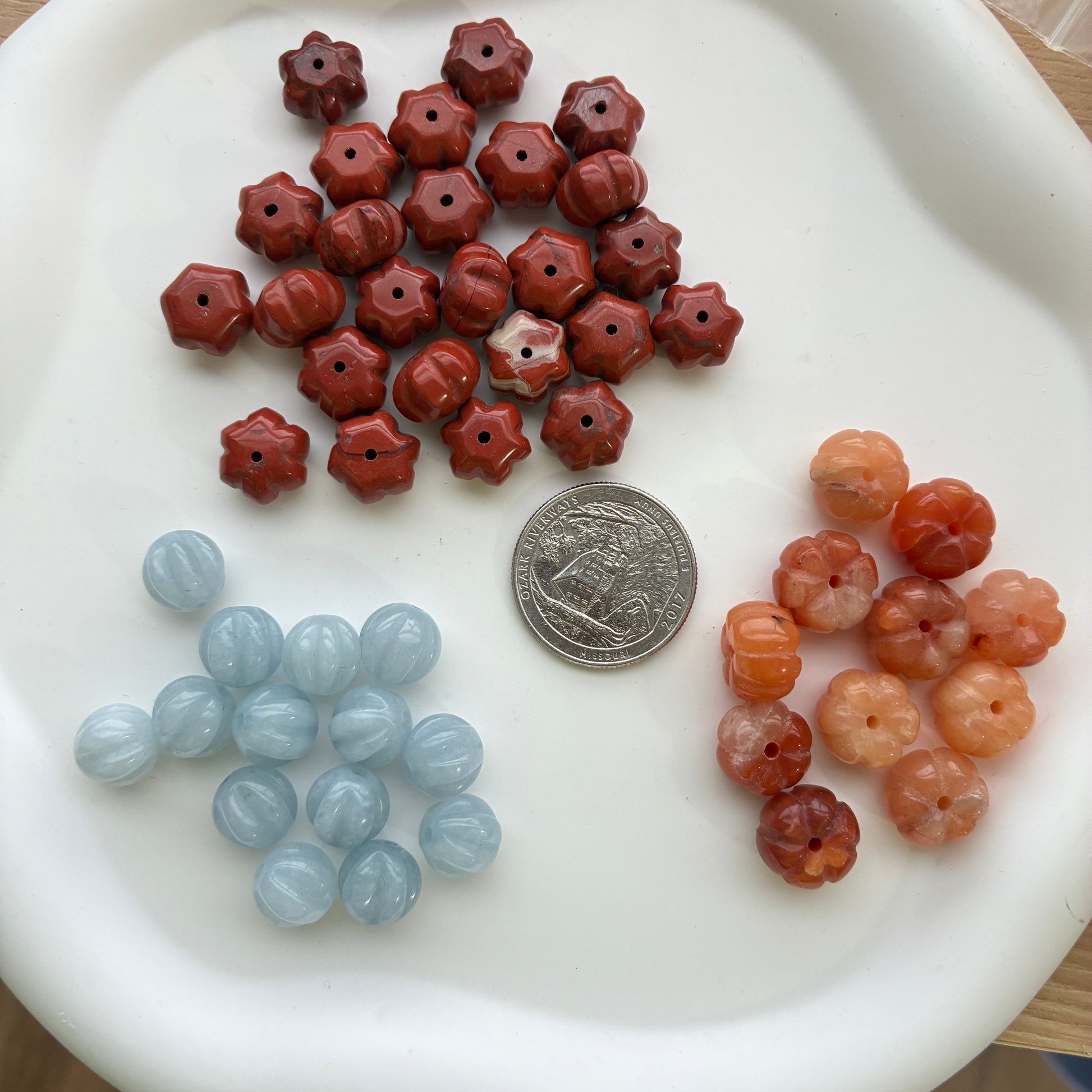 Adorable pumpkin-shaped loose beads crafted from genuine Aquamarine, Red Jasper, and Agate! These charming little gems add a touch of whimsy to your jewelry creations. Perfect for seasonal projects or year-round crafting adventures. Each bead brings its unique energy and color to your designs – mix and match for a harvest of creative possibilities!