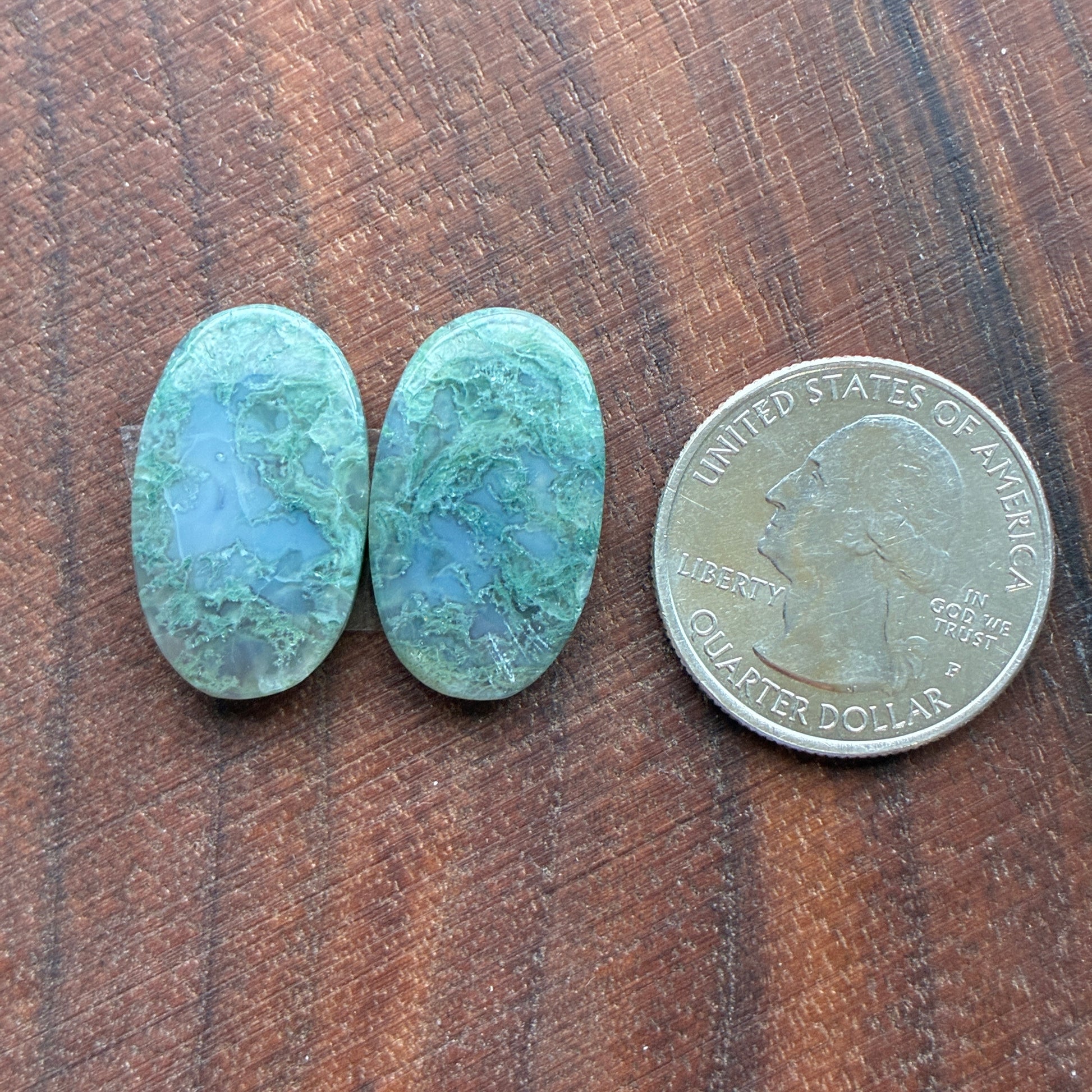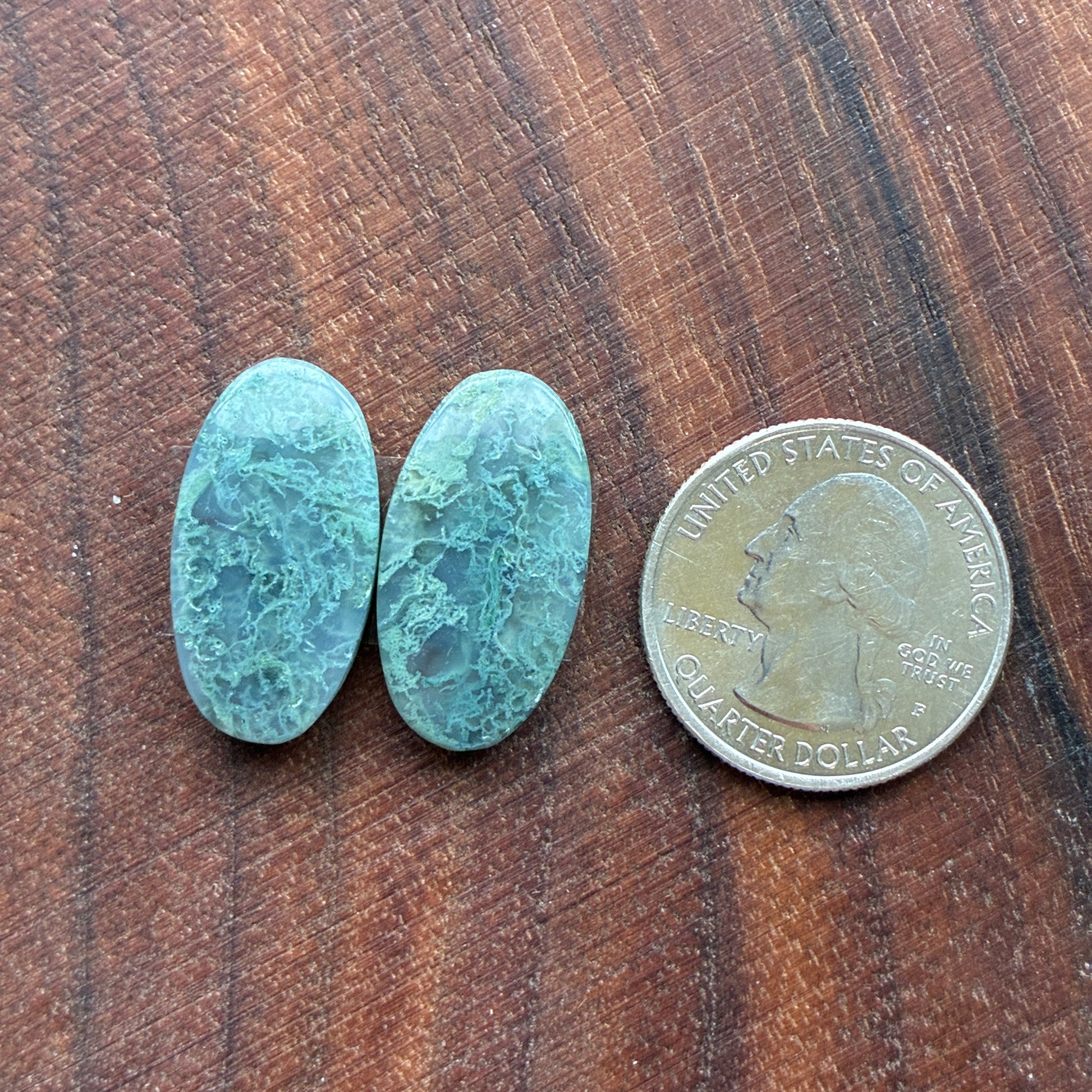 Moss Agate - Cabochon Pair - Oval - Teardrop