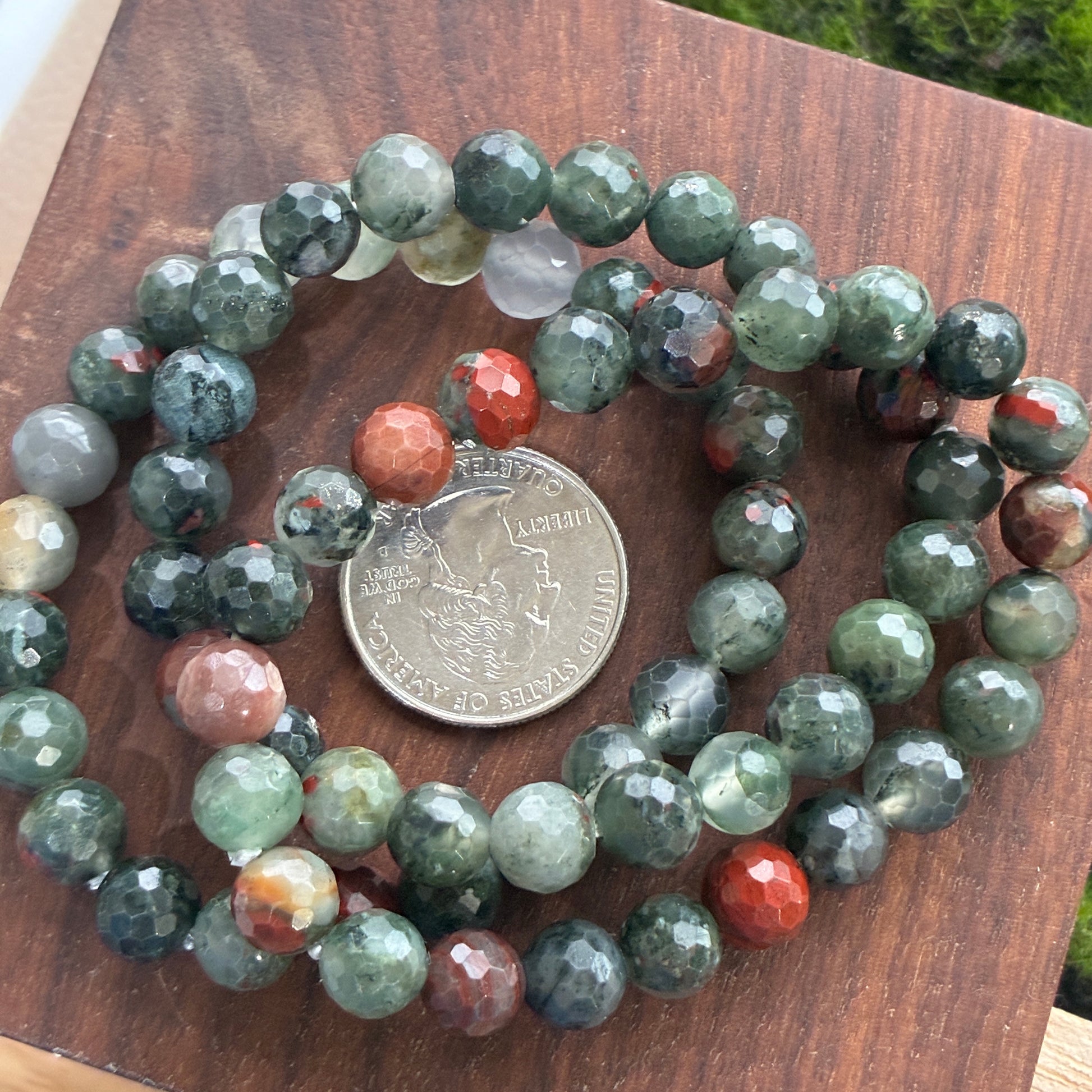 Natural Crystal Faceted Bracelet - Amethyst - African Bloodstone - Dragonblood - Rose Quartz - White Jade - Yellow Jade - Black Tourmaline - Carnelian - 7mm - 8mm