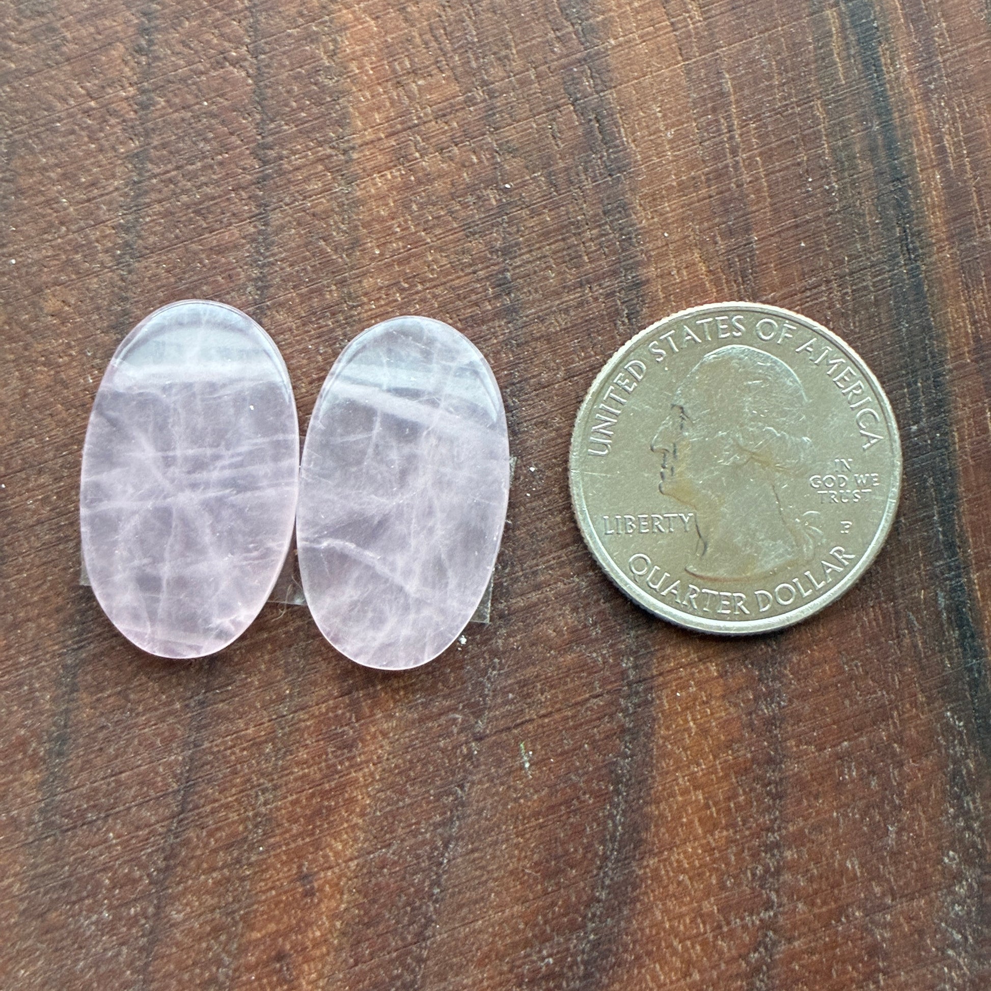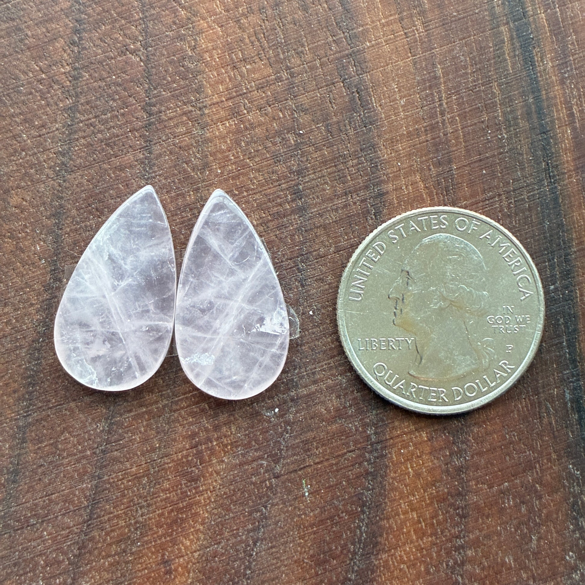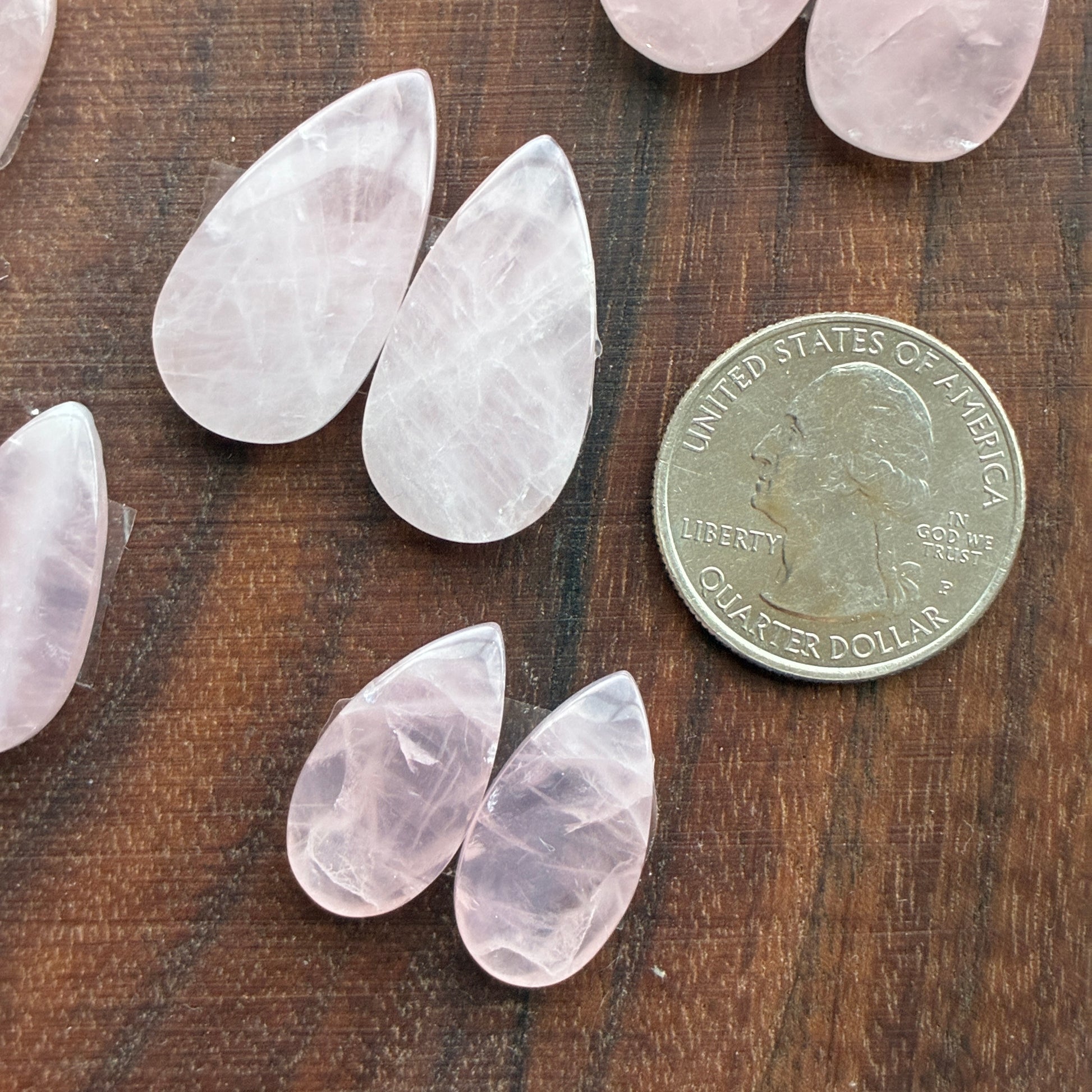 Rose Quartz - Cabochon Pair - Teardrop - Oval