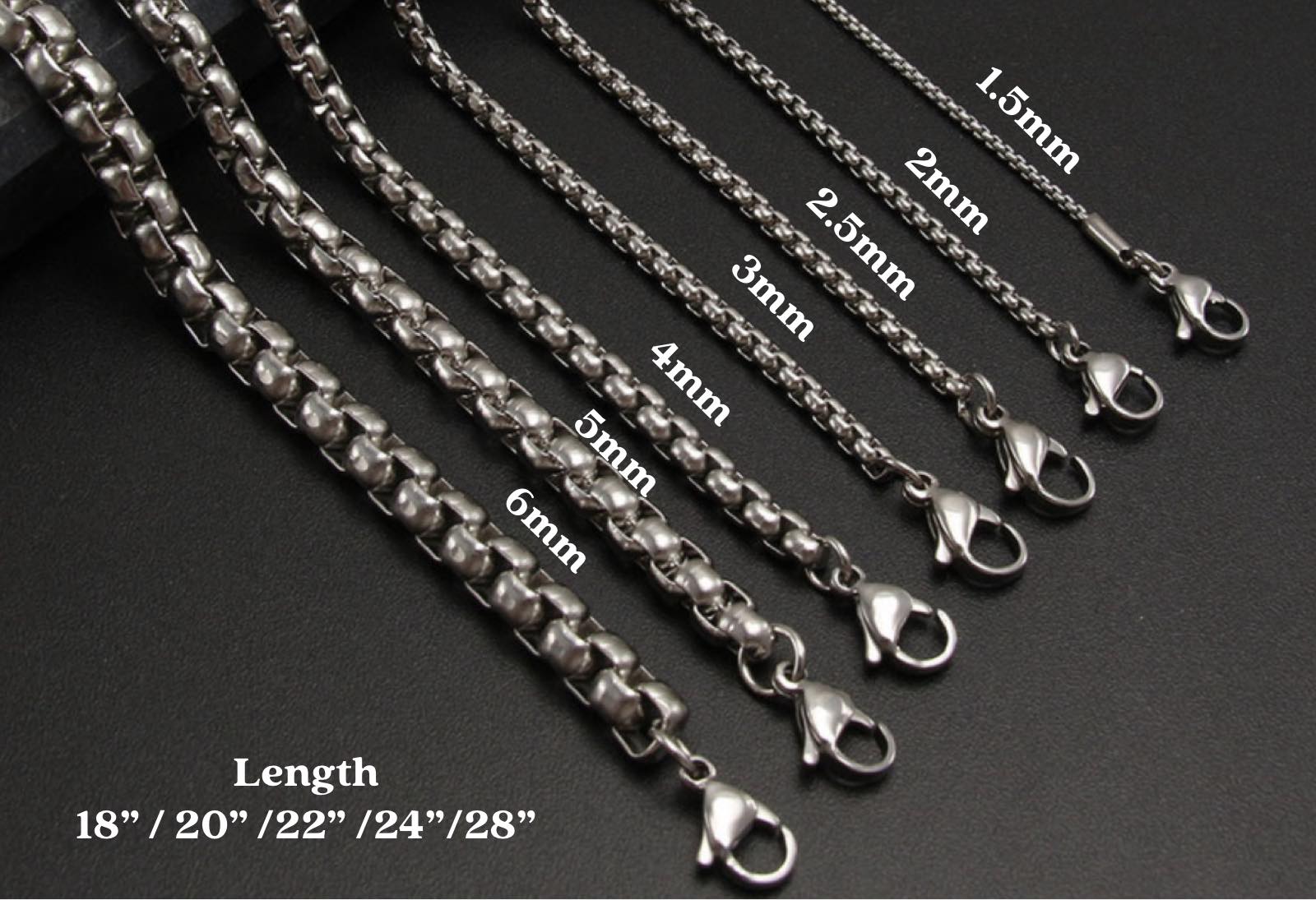 Stainless Steel Chain - 1.5mm / 2mm / 2.5mm / 3mm / 4mm / 5mm / 6mm (18"~ 28")