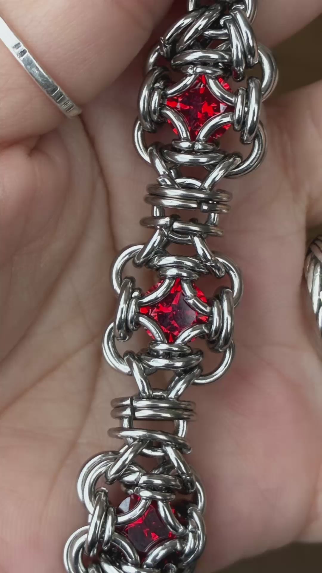 Stainless Steel Chainmail Bracelet (Red CZ)