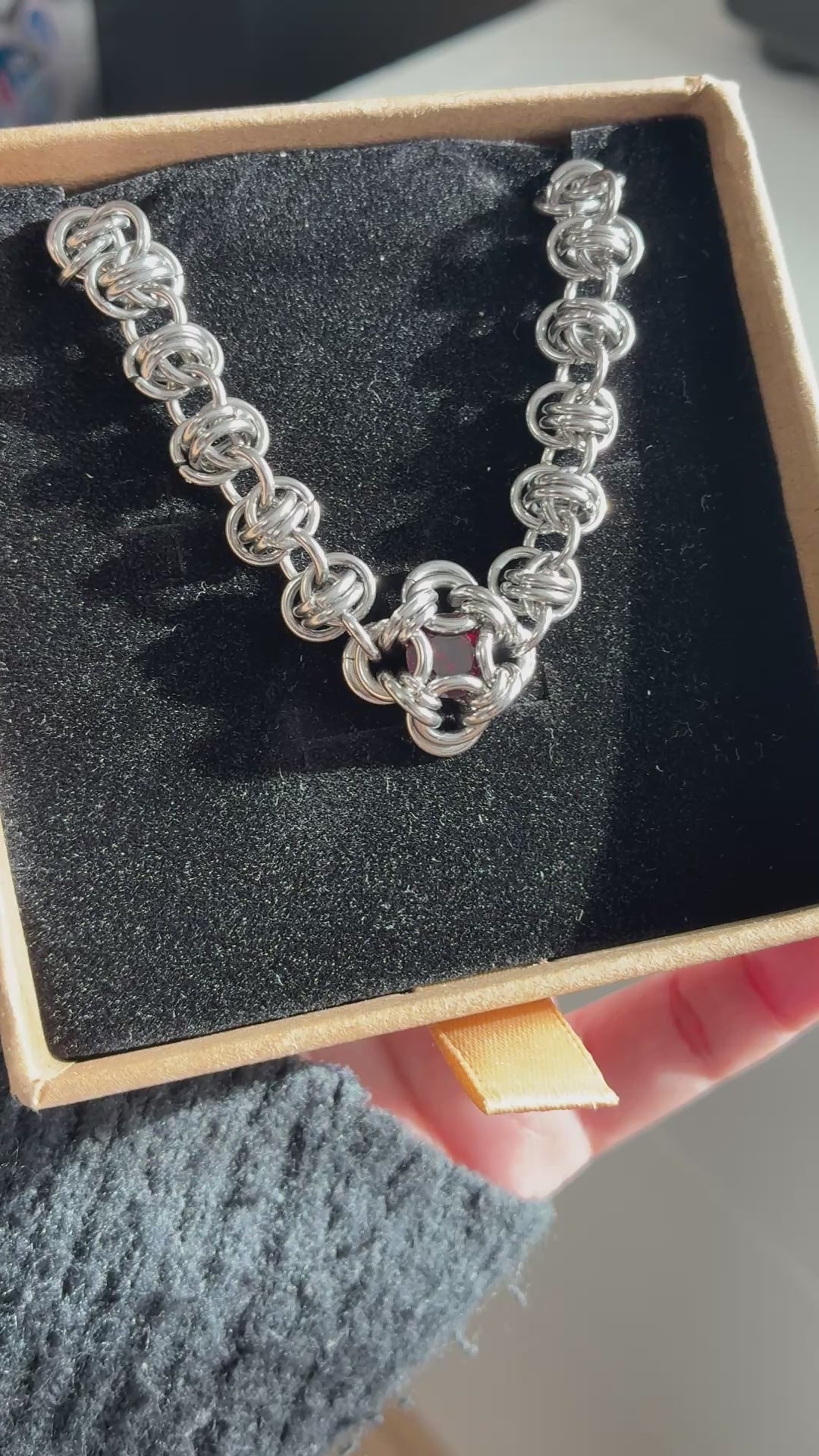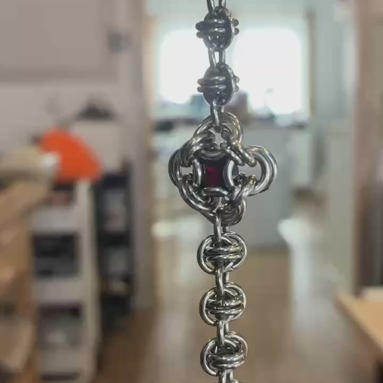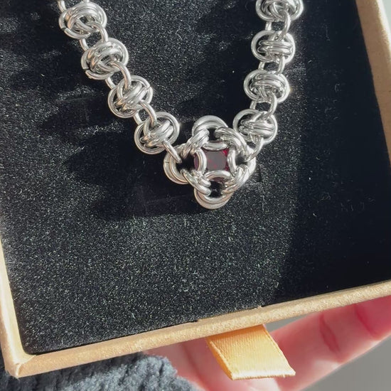 Stainless Steel Chainmail Garnet Bracelet
